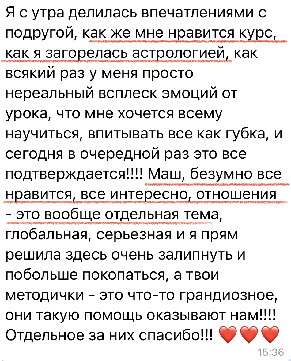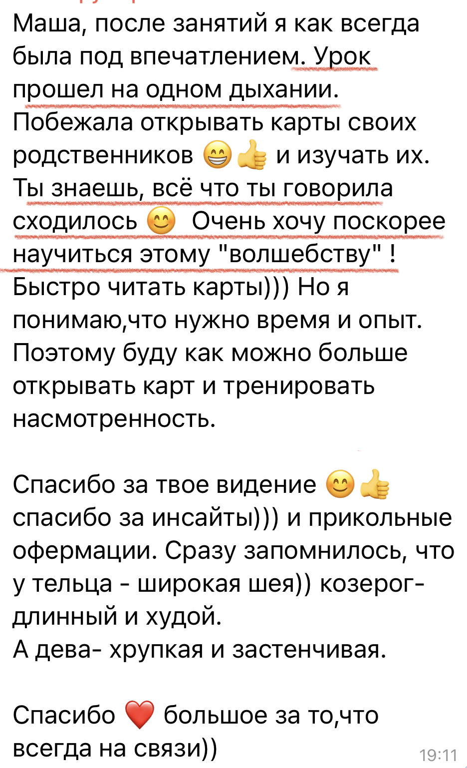 Индивидуальная консультация в течении месяца по окончании курса с Марией Саргамоновой (возможность задать личные вопросы в рамках тематики курса по своей карте)