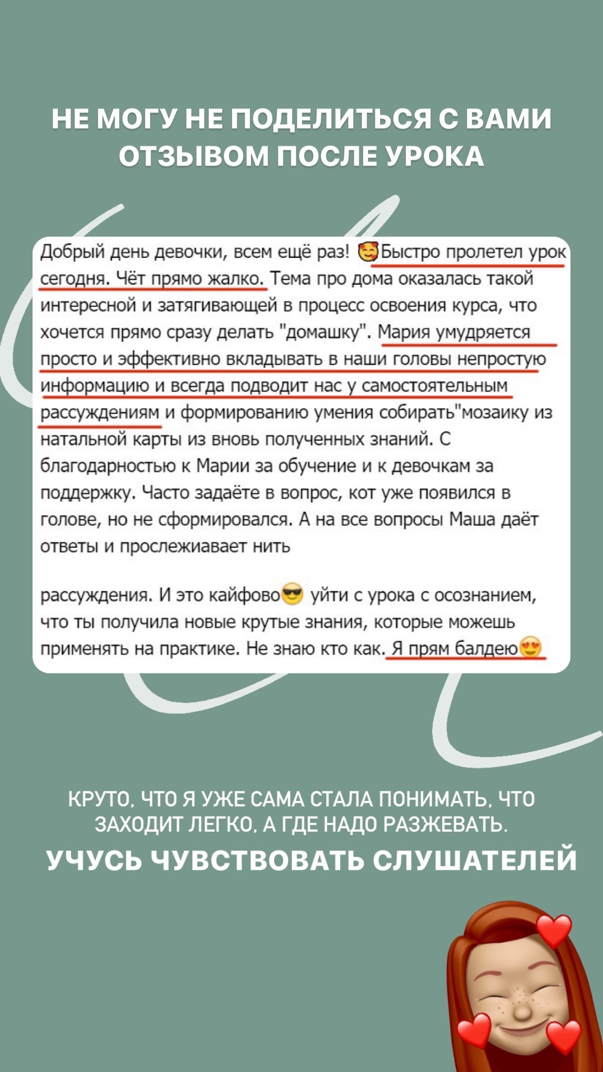 Еженедельный созвон с Марией Саргомоновой и личное наставничество в течении курса